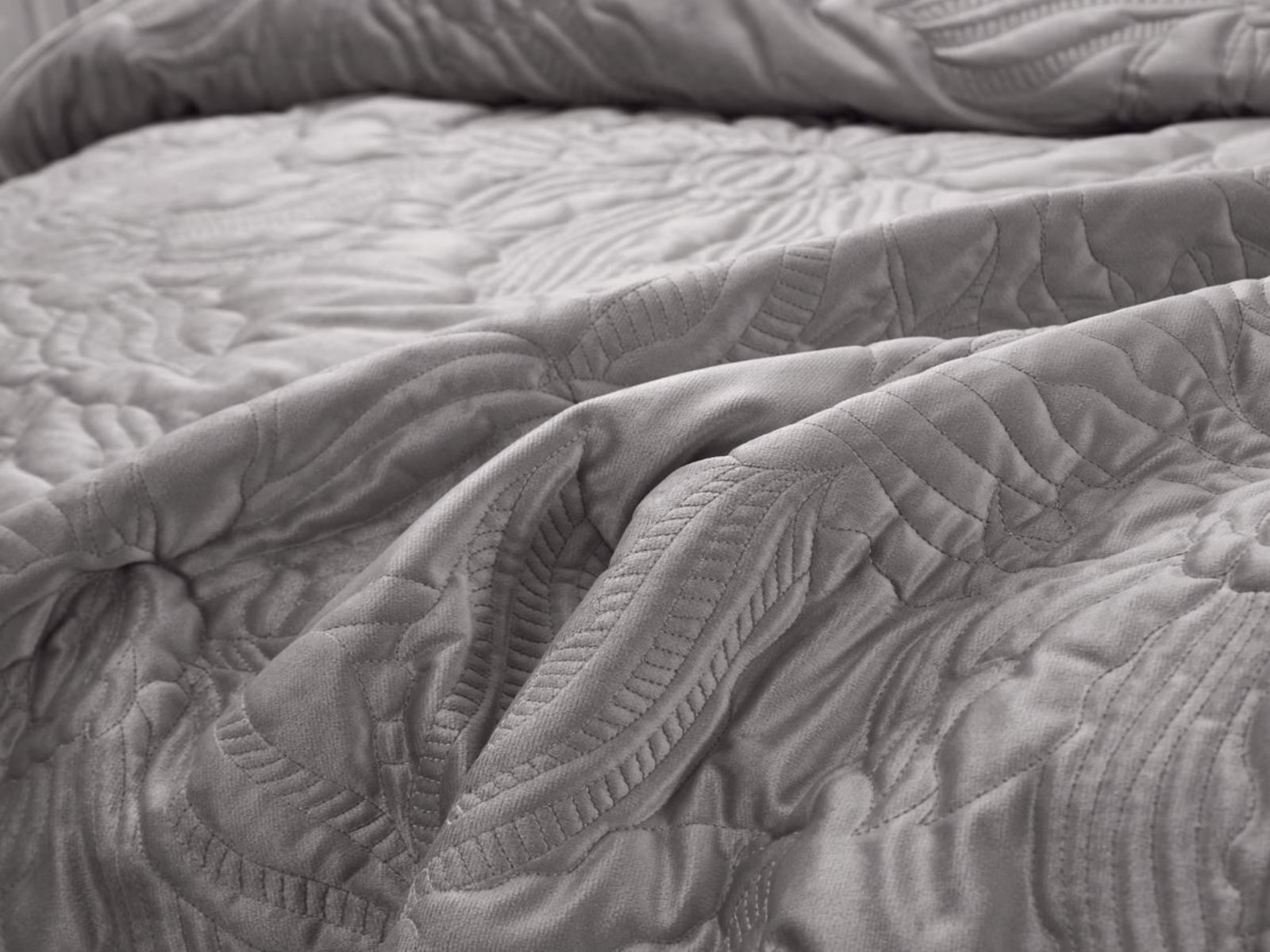 Покрывало Элис приятное на ощупь, прекрасно выглядит. Из-за особого плетения, велюровая ткань отражает свет и красиво переливается при разном освещении. Изделия из велюра хорошо сохраняют тепло и дарят чувство комфорта.