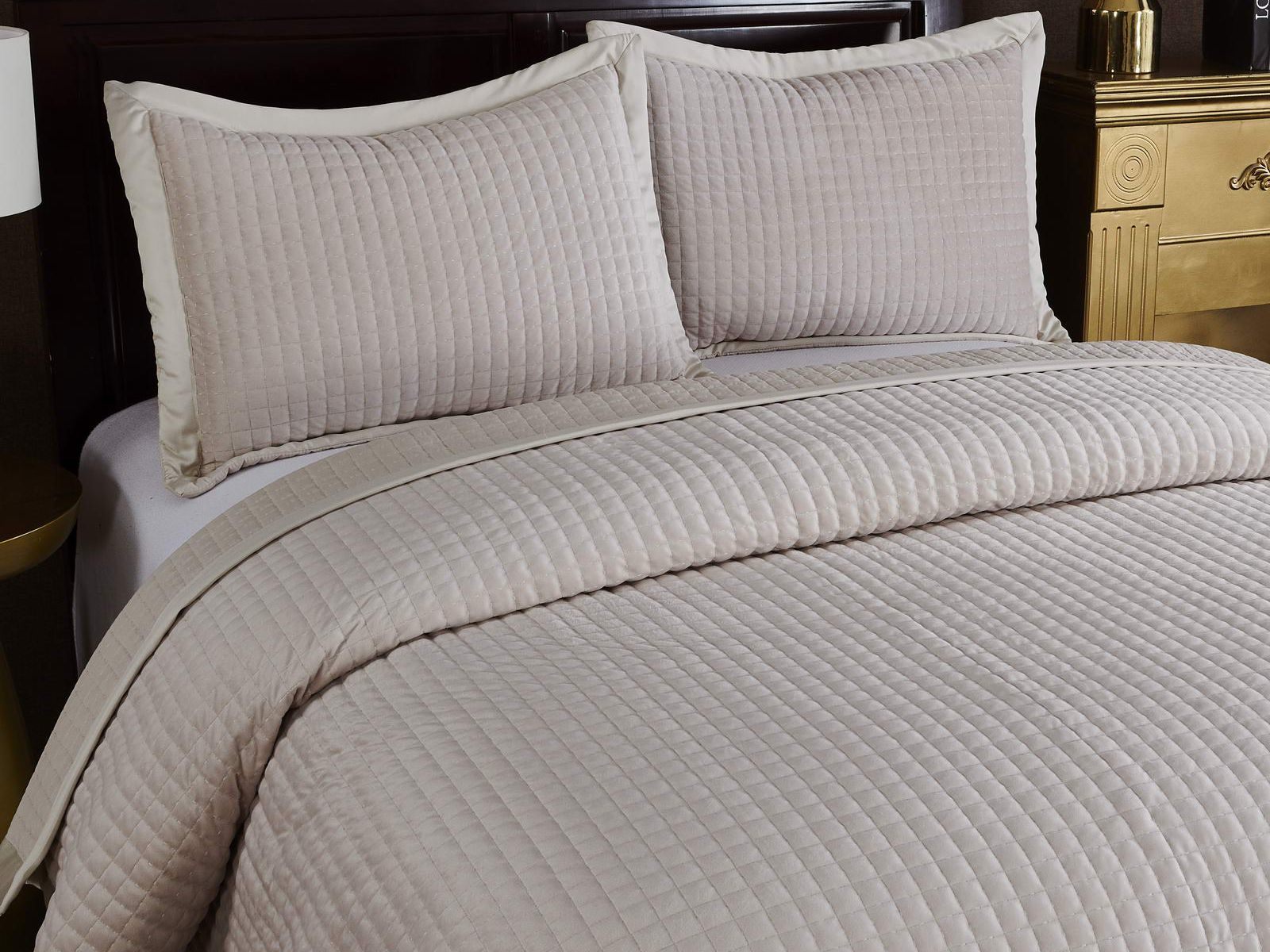 Стеганые покрывала Лоретта выполнены с окантовкой в тон основному цвету. Они не только эффектны, но и практичны: не требуют специального ухода благодаря тому, что изготовлены из современных материалов. Покрывала хорошо держат форму даже после долгого использования, не тянутся и не линяют. Их можно стирать в обычной стиральной машине, в режиме бережной стирки при температуре не выше 30 градусов.