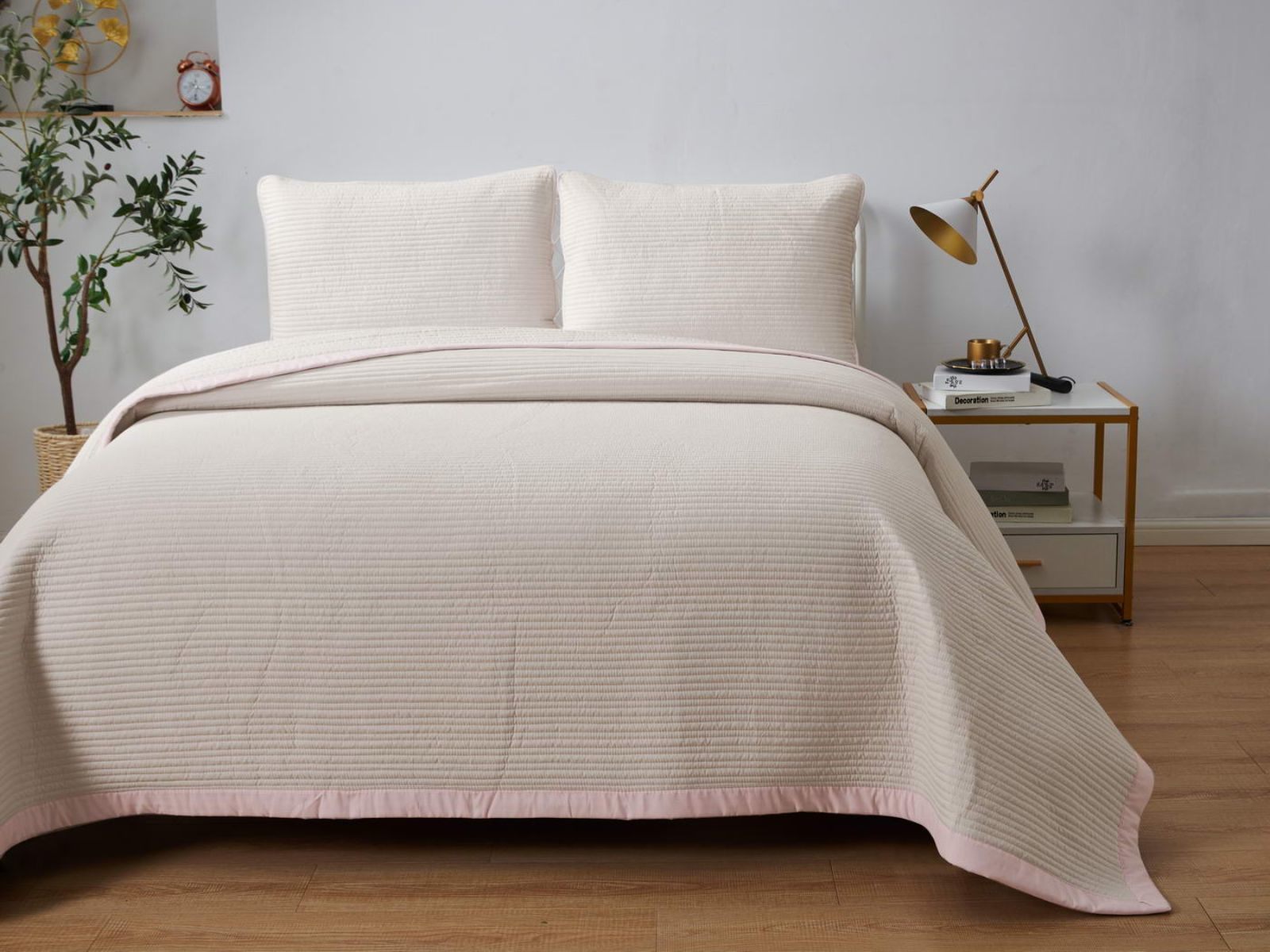 Легкое, стеганое и очень красивое покрывало с контрастной окантовкой обязательно украсит вашу комнату. Покрывало изготовлено из смеси хлопка и вискозы, поэтому оно легкое, но очень прочное. При правильном уходе за покрывалом Марисоль, оно прослужит долгое время, не полиняет и не потеряет форму.