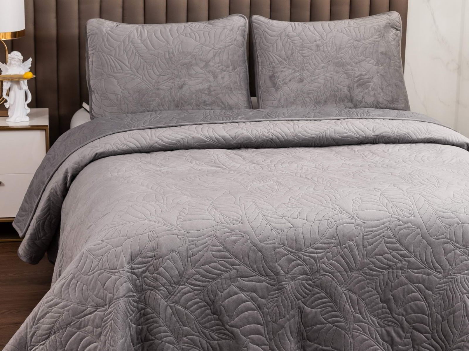 Уютные, мягкие велюровые покрывала Мелисса будут желанны в любом доме. Коллекция покрывал Мелисса выполнена в классических тонах, что делает изделия подходящими для большинства интерьеров, а изящный рисунок в виде листьев подчеркивает индивидуальность.