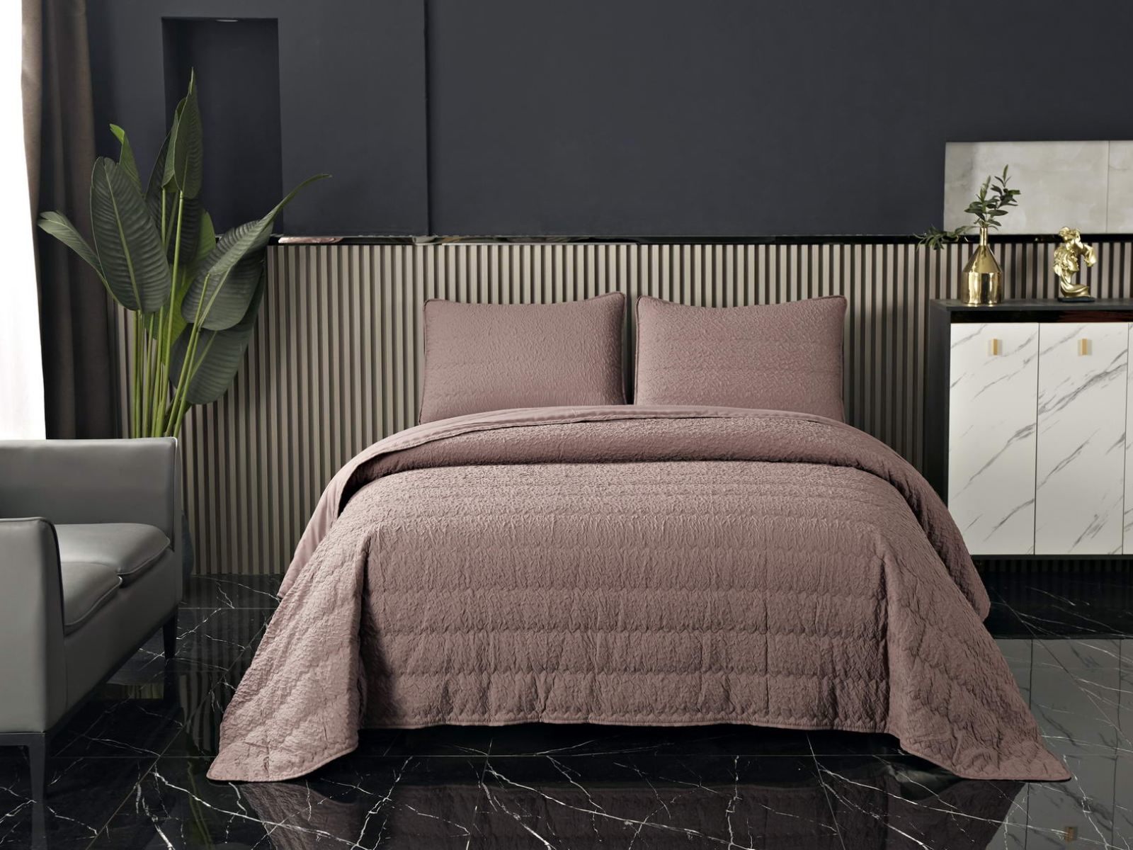 Стеганые покрывала Надин имеют интересную «жатую» структуру, благодаря которой они выглядят живо и оригинально. Они украсят любое помещение.