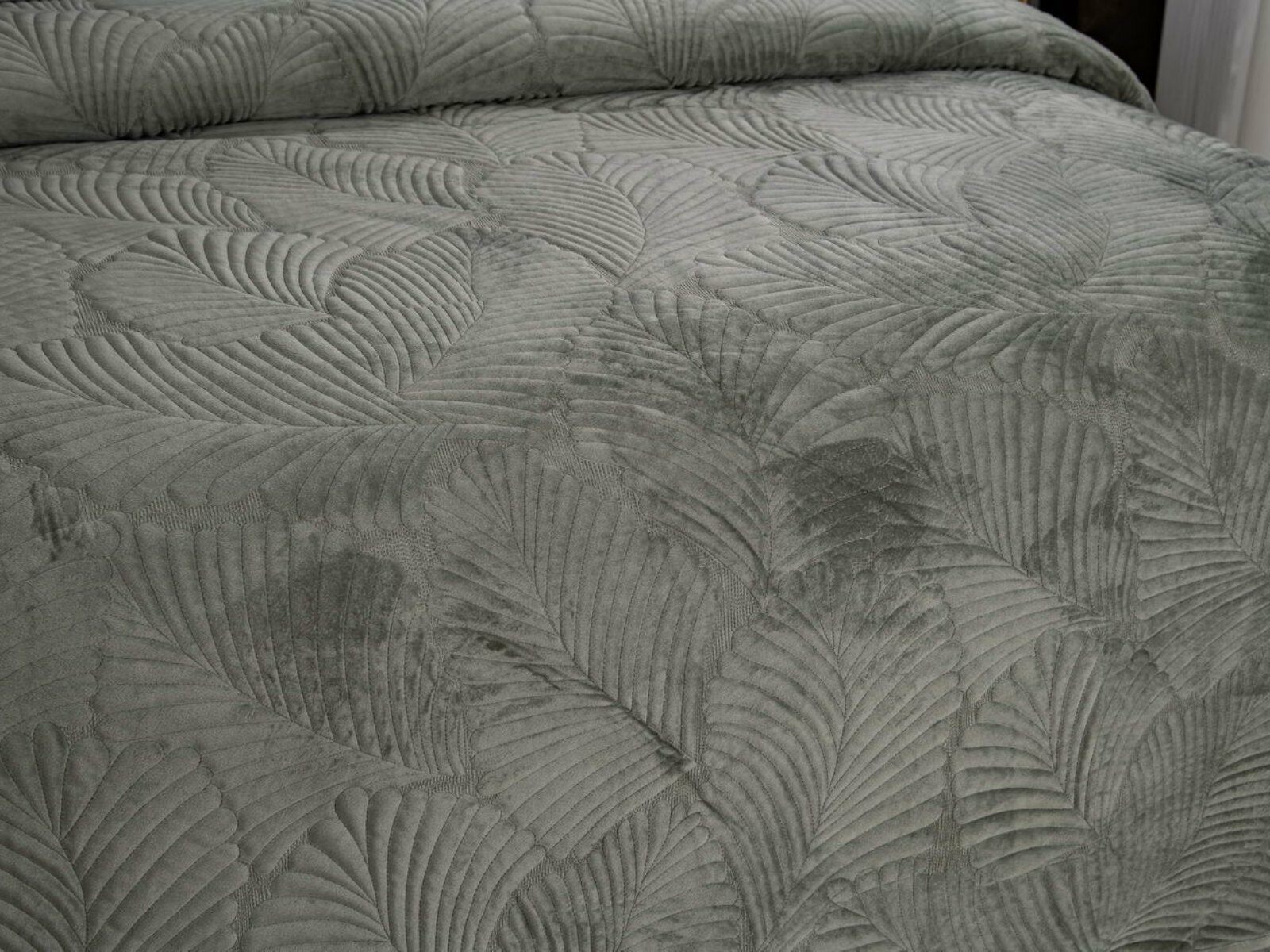 На создание велюрового покрывала Ноэль наших дизайнеров вдохновила ночь в середине лета, когда на раскаленную от жары землю спускается долгожданная прохлада. Роскошная вышивка в виде пальмовых листьев будет напоминать о тени, которую отбрасывают деревья.