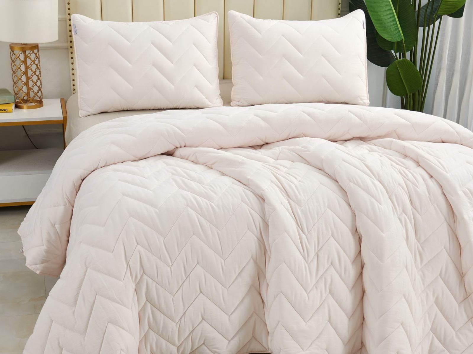 В комплект входят покрывало и одна либо две наволочки (50х70 см) из аналогичного материала в зависимости от размера. Изделия гипоаллергенны, они подходят детям и людям с чувствительной кожей. Покрывала и наволочки не линяют, сохраняют форму и цвет при многочисленных стирках и не выгорают на солнце. Изделия можно стирать в щадящем режиме при температуре не выше 30 градусов.