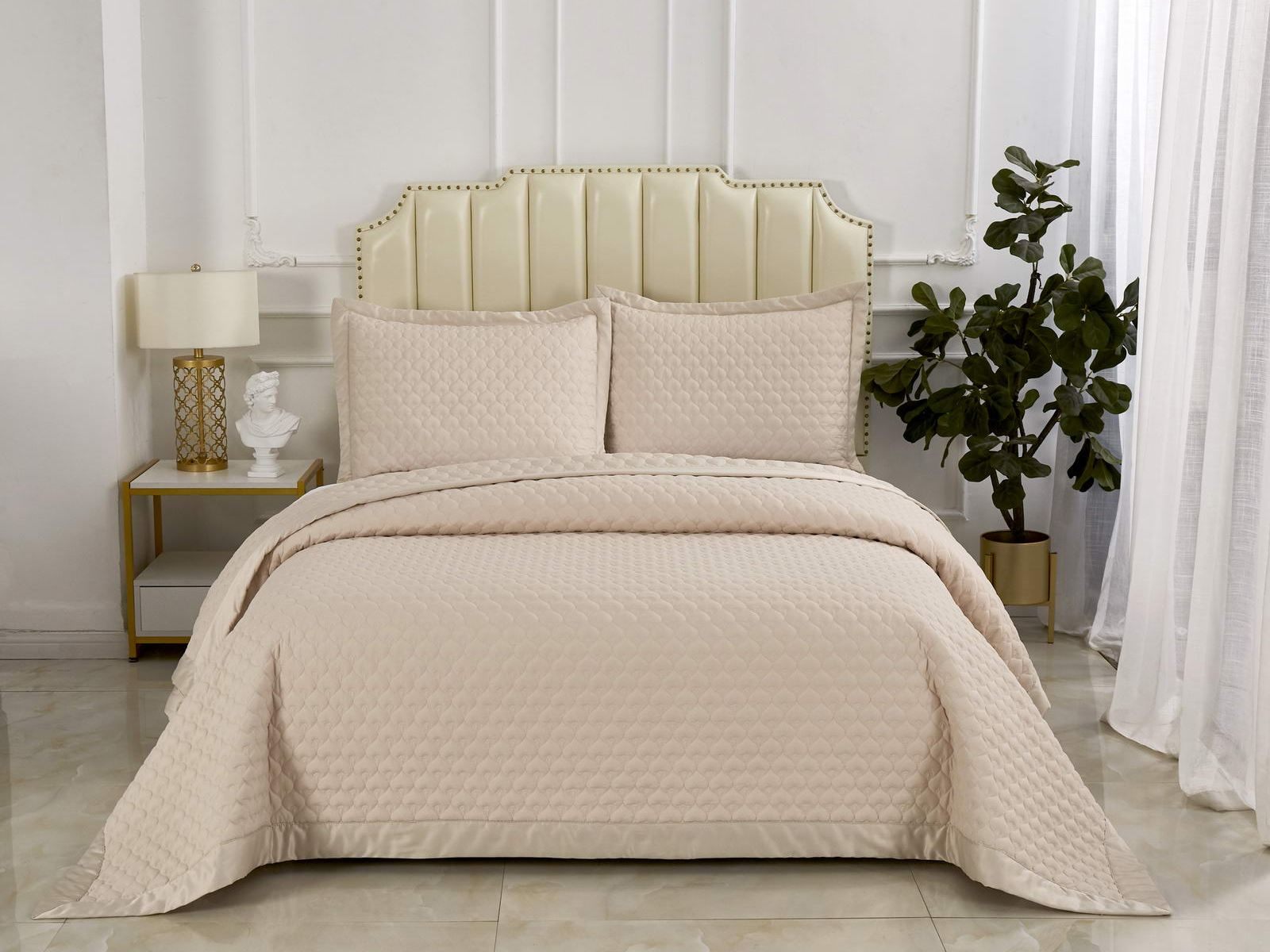В комплект входят покрывало и одна либо две наволочки (50х70 см) из аналогичного материала в зависимости от размера. Изделия гипоаллергенны, они подходят детям и людям с чувствительной кожей. Покрывала и наволочки не линяют, сохраняют форму и цвет при многочисленных стирках и не выгорают на солнце. Изделия можно стирать в щадящем режиме при температуре не выше 30 градусов.