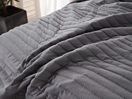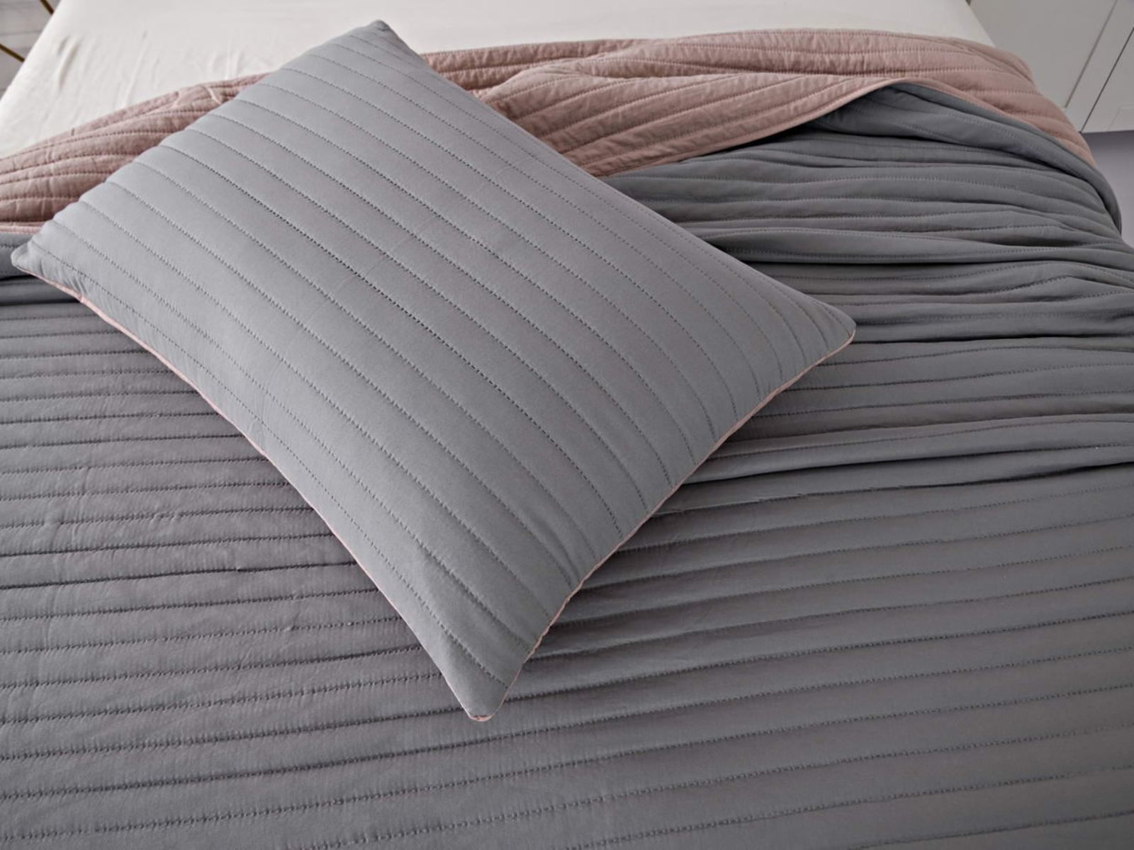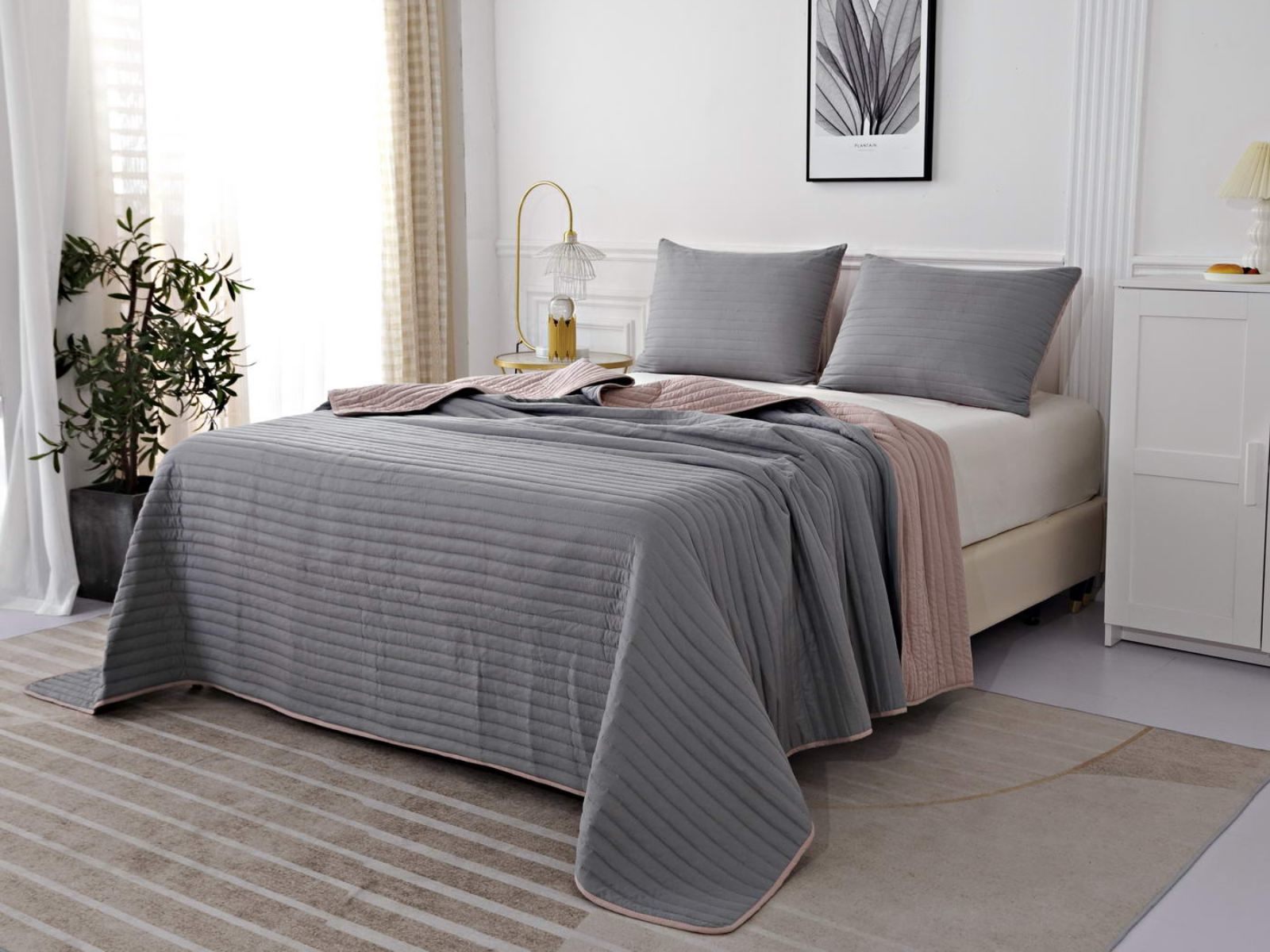 Покрывала двусторонние, оборотная сторона декорирована окантовкой, они выглядят сдержанными и универсальными. Изделия выполнены в восьми оттенках, подойдут для различных интерьеров, объединяет коллекцию потрясающее качество и приятный внешний вид.