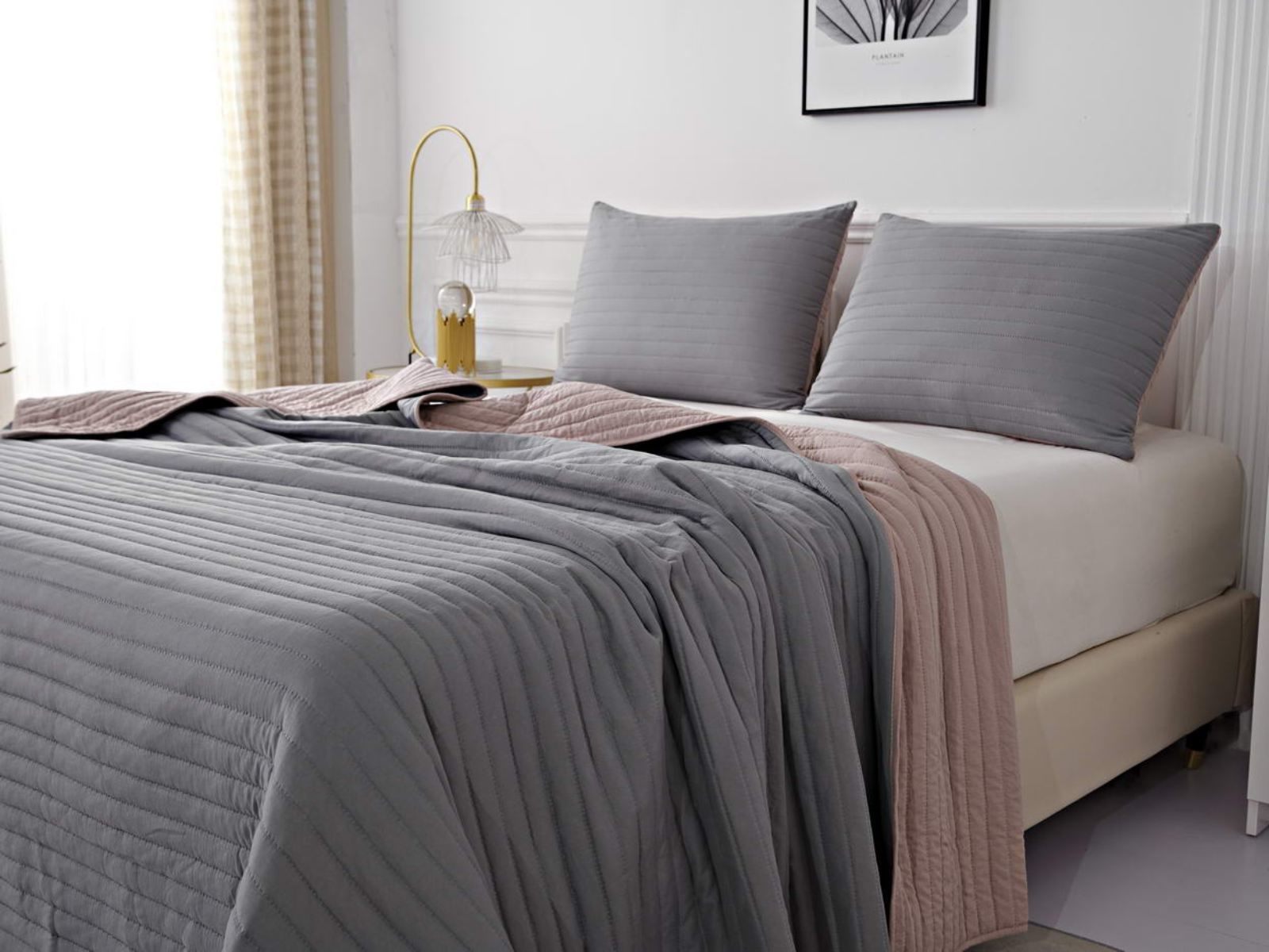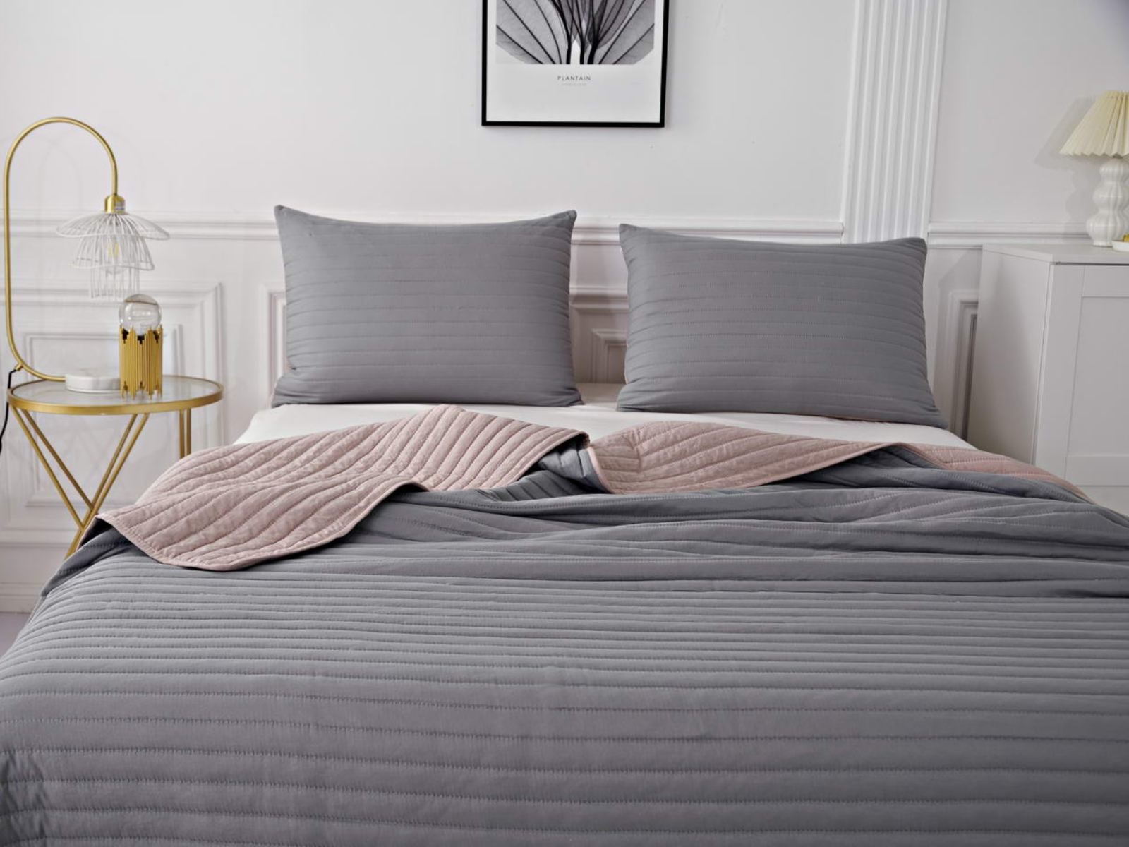 Двусторонние стеганные покрывала Самуэль выполнены из вискозы и хлопка, они легкие и прочные. В комплект входят покрывало и одна либо две наволочки (50х70 см) из аналогичного материала в зависимости от размера, вы можете использовать покрывало по назначению, либо в качестве постельного белья. В любом случае, вы будете в восторге от этого комплекта!