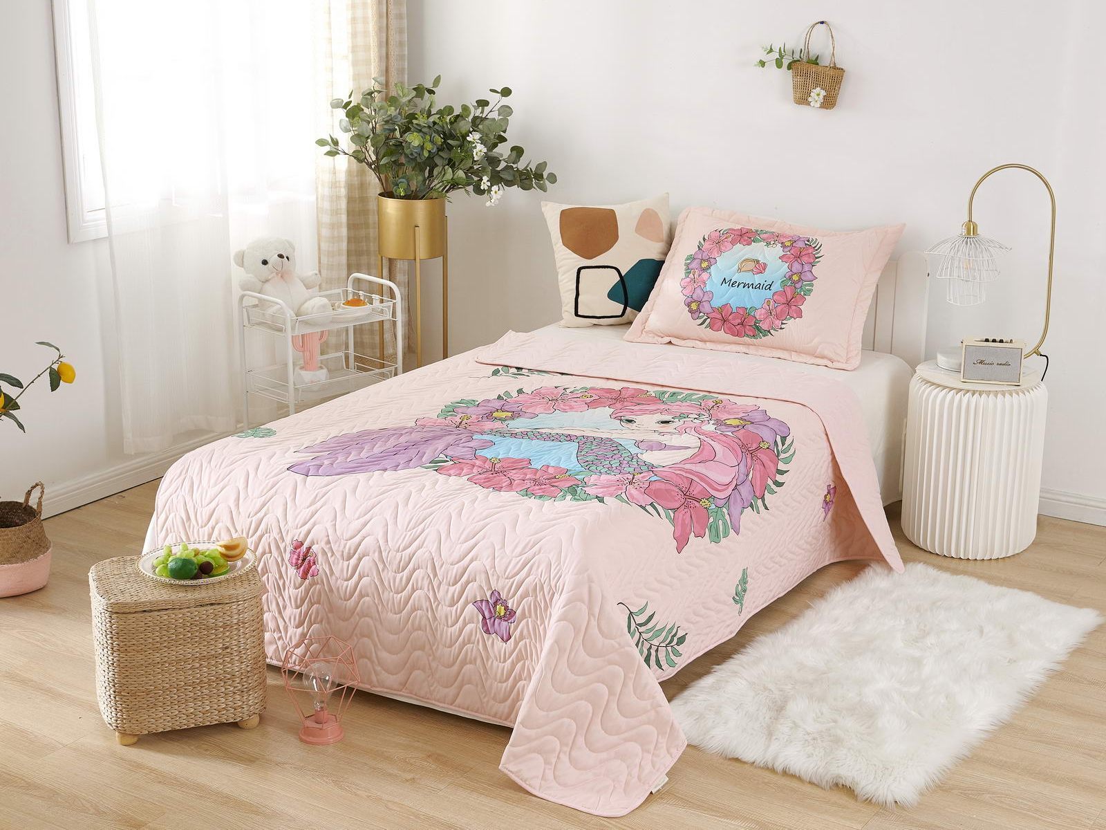 Детские покрывала - это особая забота об уюте и комфорте ребенка. Красивое, стеганое покрывало коллекции «Sunny day» придаст любой детской спальне яркую индивидуальность. Волнистые стежки делают изящные покрывала еще более выразительными и изящными. К ним в комплекте идут наволочки, у них есть интересная особенность, которая непременно понравится ребенку– небольшие ушки.
