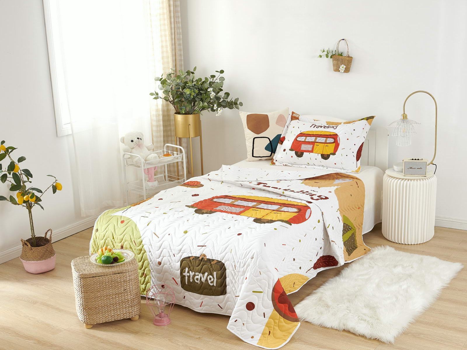 Детские покрывала - это особая забота об уюте и комфорте ребенка. Красивое, стеганое покрывало коллекции «Sunny day» придаст любой детской спальне яркую индивидуальность. Волнистые стежки делают изящные покрывала еще более выразительными и изящными. К ним в комплекте идут наволочки, у них есть интересная особенность, которая непременно понравится ребенку– небольшие ушки.