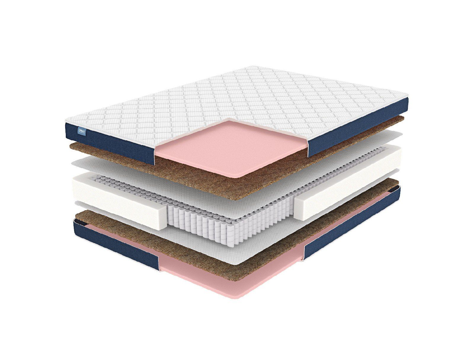 Димакс Практик Медиум Лайт 1000 — ортопедический пружинный матрас универсальной средней жёсткости. Благодаря комбинации плотной пены и кокосовой койры с обеих сторон, эта модель идеально подойдёт для комфортного сна и поддержки позвоночника.