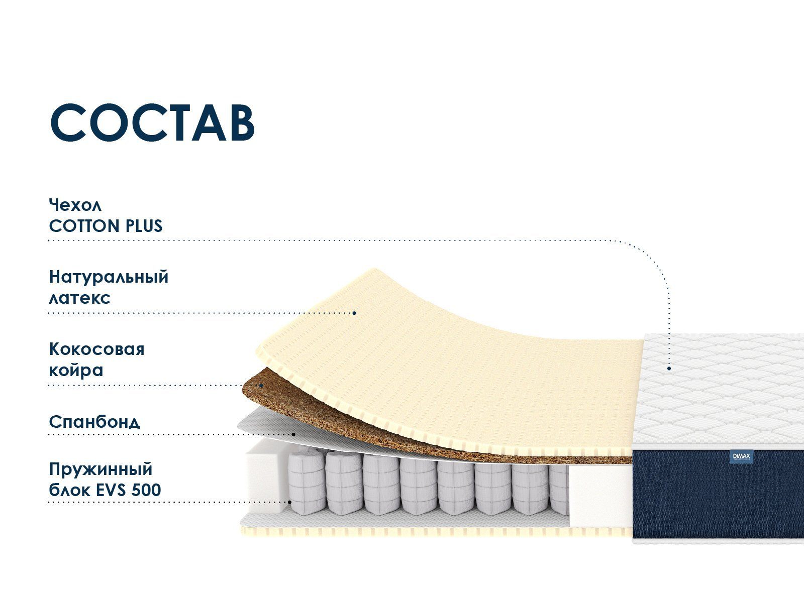 Димакс Практик Медиум Софт 500 — пружинный ортопедический матрас с двумя уровнями жёсткости и натуральным латексом в составе. Переворачивая изделие, вы можете выбирать поверхность, которая лучше всего подходит для вашего комфорта.