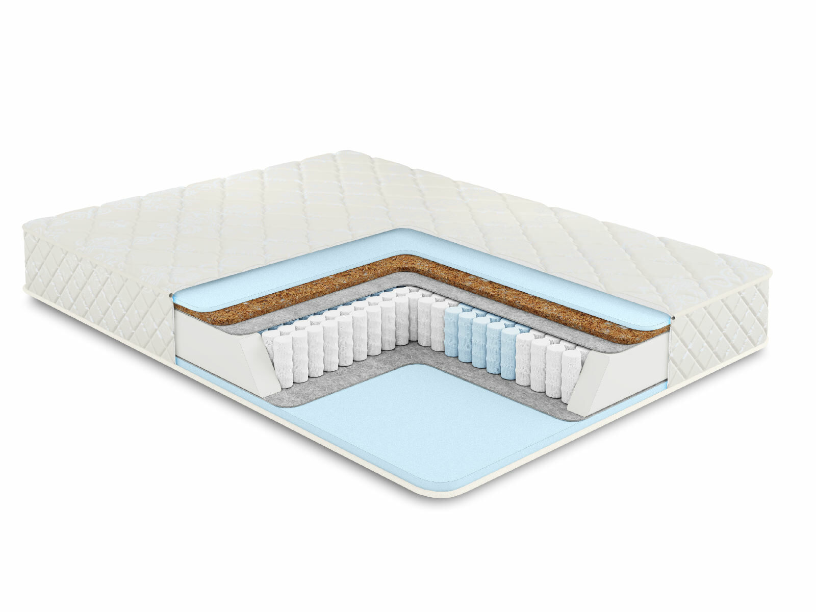 У матраса укреплён периметр. Плотная пена установлена по краям изделия для того, чтобы пружины не проседали и не проваливались. Дополнительно блок проложен термополотном для изоляции слоев наполнителя. Благодаря такому расположению пружины не оказывают механического воздействия на внутренние слои материалов.