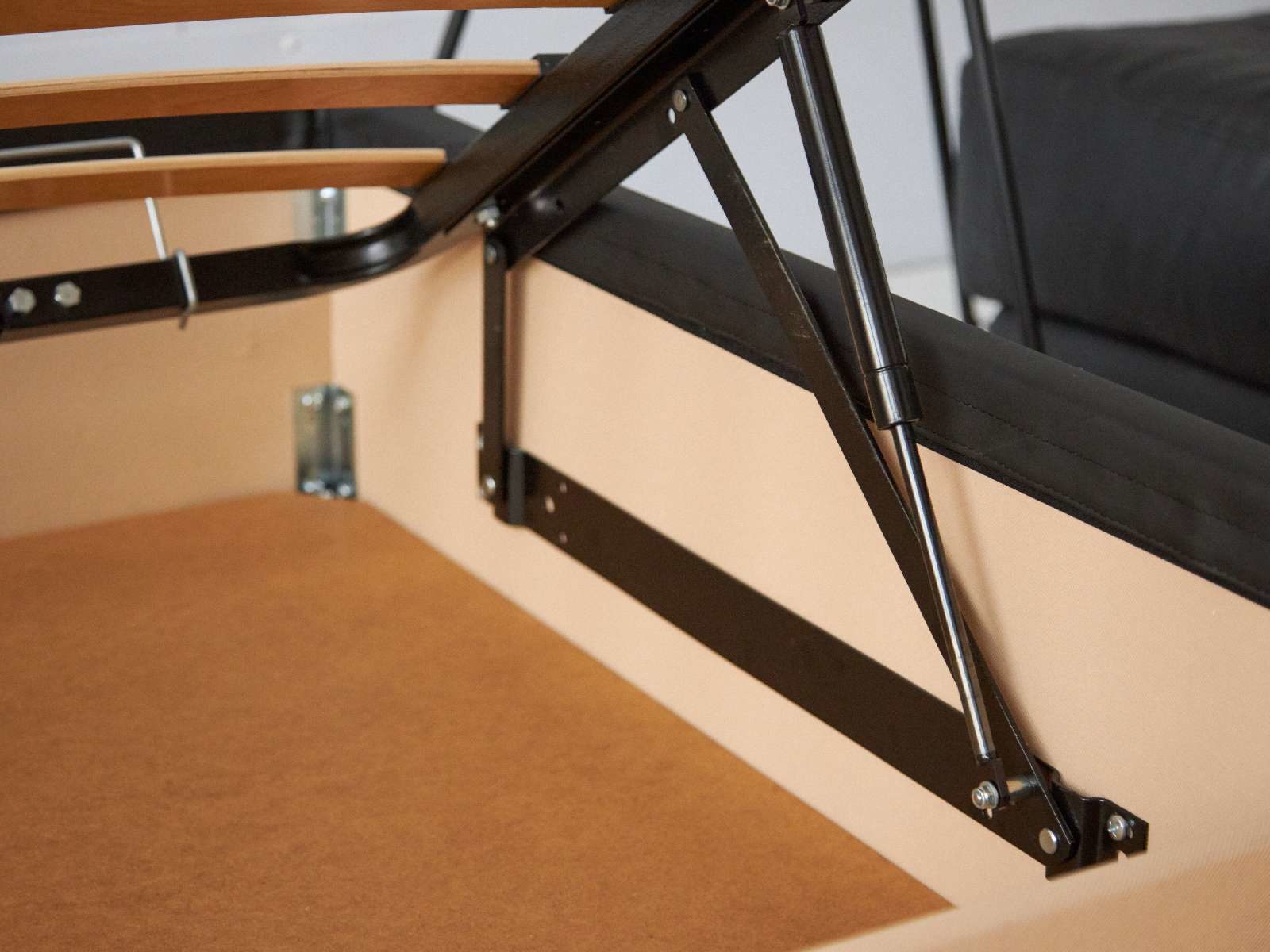 В комплектации с подъемным механизмом кровать имеет вместительный бельевой короб с двумя отделениями.