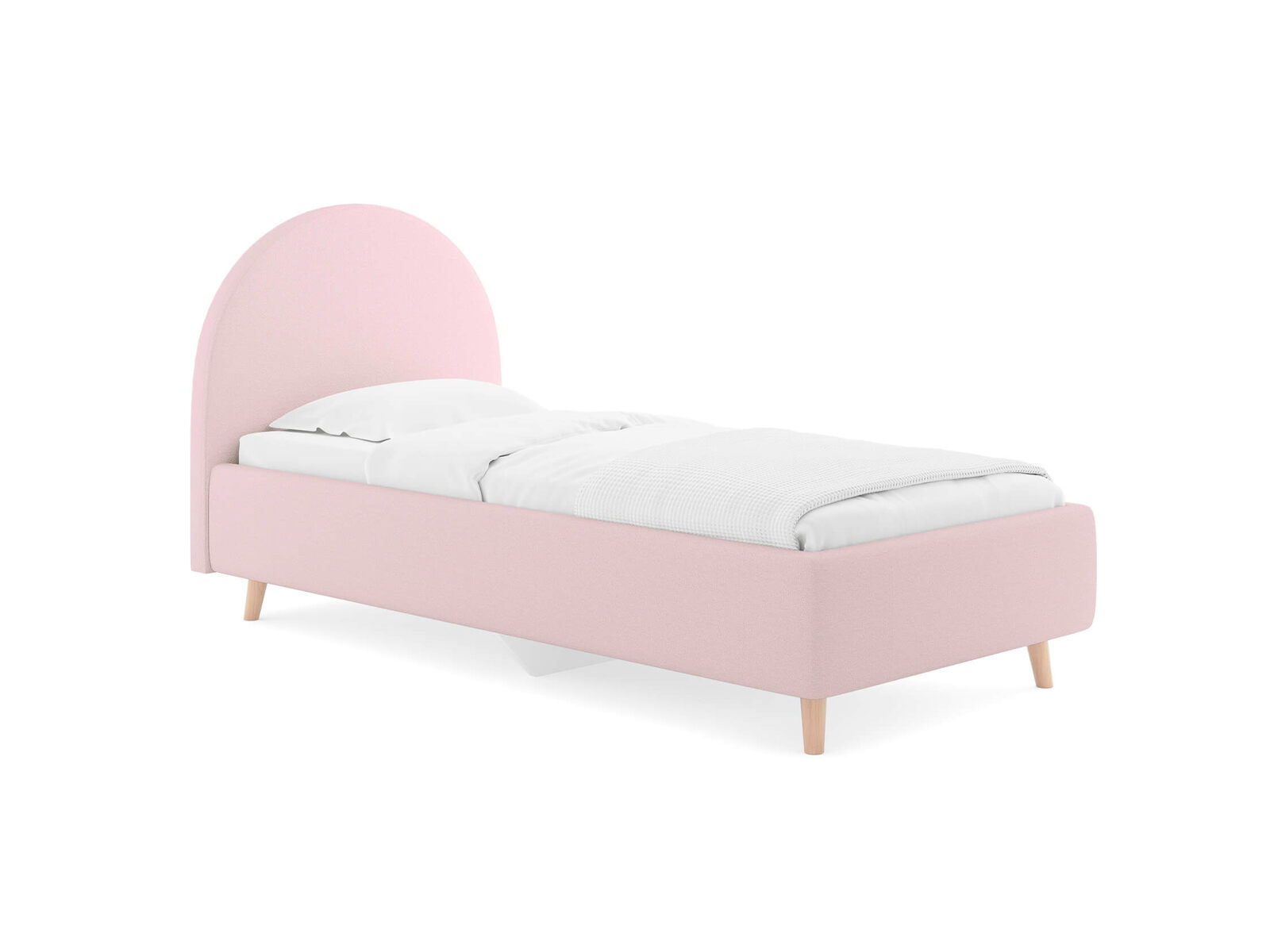 Подростковая кровать с закругленным изголовьем — это идеальное решение для создания уютного и стильного пространства в комнате. Элегантные линии изголовья не только придают изделию изысканный вид, но и добавят мягкость в интерьер, создавая уютную обстановку. По умолчанию задняя спинка кровати обивается тканью, что позволит расположить кровать не только к стене. Основание кровати на высоких деревянных ножках. Благодаря увеличенной высоте позволяют осуществлять легкую уборку под кроватью, даже с помощью робота-пылесоса. При необходимости кровать может быть укомплектована трансформируемым основанием Aquarius.