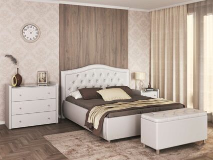 Стильный комод с тремя ящиками станет не только частью декора спальни, но и полезным функциональным дополнением интерьера вашей комнаты. Вместительные ящики для белья позволят практично разместить спальные принадлежности и аксессуары. На стеклянной столешнице расположится ночник, ваши любимые рамки с фотографиями, а широкая палитра расцветок обивки комода из экокожи, велюра или рогожки позволит ему органично вписаться в любой интерьер.