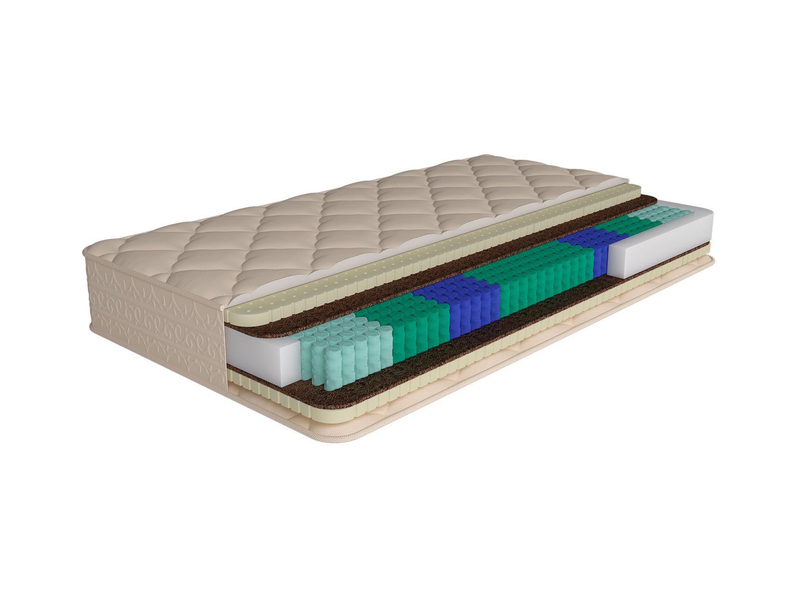 Для зон матраса, находящихся в районе плеча и колена спящего человека, в 7-зональном пружинном блоке, используется пружинный блок средней жесткости, оказывающий меньшее ответное давление на тело. Это позволяет матрасу прогнуться под выступающим плечом на глубину необходимую для поддержания позвоночника в горизонтальном положении. Блок пружин дополнен с обеих сторон слоями кокосовой койры и натурального латекса.