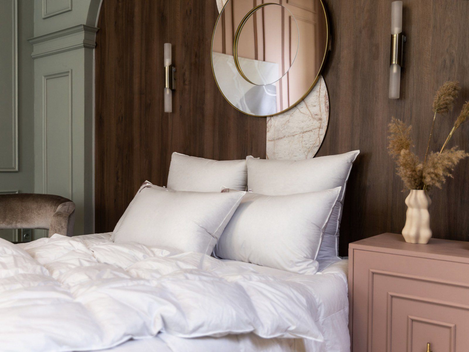 Изделия коллекция GRASS SILVER DOWN LINE наполнены серым пухом гусей Тулузской породы с добавлением мелкого перышка, что позволяет получить объемные подушки и пушистые одеяла. Чехлы выполнены из немецкой ткани, прошедшей финишную обработку SanProCare® Sensitive, которая позволяет материалу усиленно поглощать и отдавать влагу. Ткани сертифицированы по OEKO-TEX® Standard 100 – международному стандарту безопасности текстильных изделий. Ткани, отмеченные маркировкой «Bramscher Tuch» – это безусловный знак качества и великолепный результат работы специалистов из города Бра́мше в Германии. Высочайшей оценки требует буквально все: от высококачественного сырья и тончайшей пряжи до заключительной эксклюзивной отделки тканей. Сочетание тонкой ткани и серого пуха придают изделиям серебристый оттенок, что легло в основу названия коллекции.