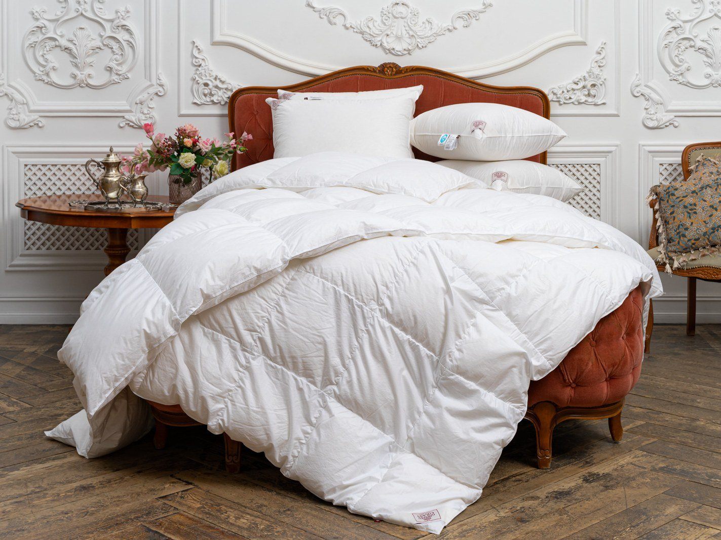 Наполнитель: 100% новый, гусиный белый пух высшего качества, отсортированный вручную, с коэффициентом упругости (Fill Power) не менее 800ед.