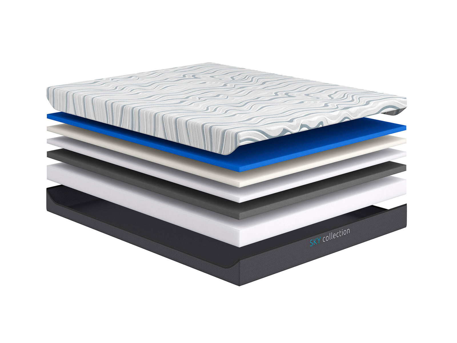 Современный, многослойный беспружинный матрас средней жёсткости. Сочетание пен разной плотности повторяет очертание тела - сохраняет ощущение комфорта, уменьшает количество переворачиваний и делает сон крепким на протяжение всей ночи.