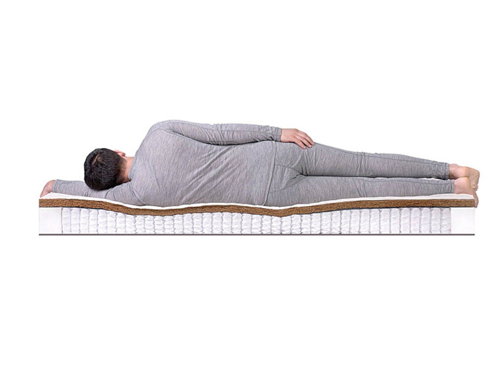 Матрас SleepDream Hard S1000, высота которого 22 см, выдерживает достаточно высокие нагрузки - до 140 кг на спальное место. Один из плюсов данной модели в том, что есть возможность выбрать наиболее удобную сторону для сна с учетом своих предпочтений, так как они имеют разную жесткость. Одна из сторон жесткая за счет толстого слоя кокосовой койры. В другой сочетаются койра и натуральный латекс - эта сторона имеет среднюю жесткость. Матрас изготовлен на основе прочного современного пружинного блока (500 пружин на квадратный метр) с отличными ортопедическими свойствами. Чехол модели SleepDream Hard S1000 сшит из хлопкового жаккарда, простеган и наполнен объемным антиаллергенным холконом. В него по заказу можно бесплатно вшить смотровую молнию.