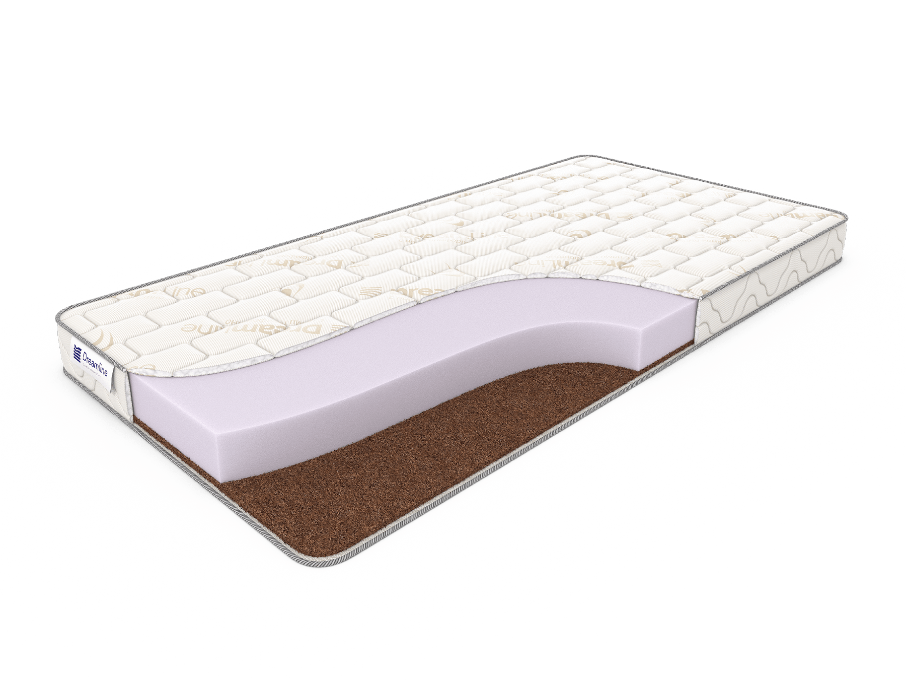 Матрас имеет разную жесткость сторон. Более упругая поверхность представлена кокосом. Природный наполнитель в сочетании с ППУ обеспечивает удобство для спины. Пенополиуретан подстраивается под человека и делает отдых удобным. Материалы долго служат и не проседают со временем.