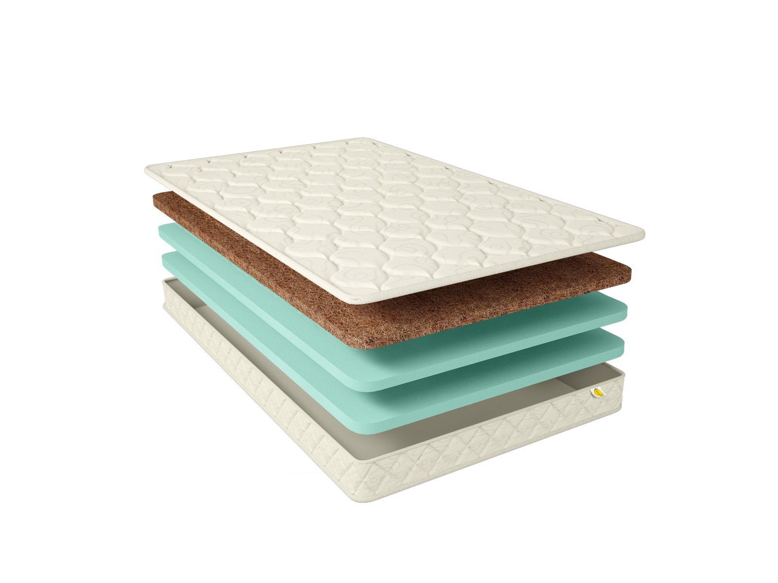 Матрас складывается из искусственного латекса и кокосовой койры. На первый наполнитель приходится 6 см, на второй – 3 см. Каждая из сторон матраса приобретает свою степень жёсткости – среднюю и высокую. Белее мягкая поверхность реализована с помощью искусственной пены.