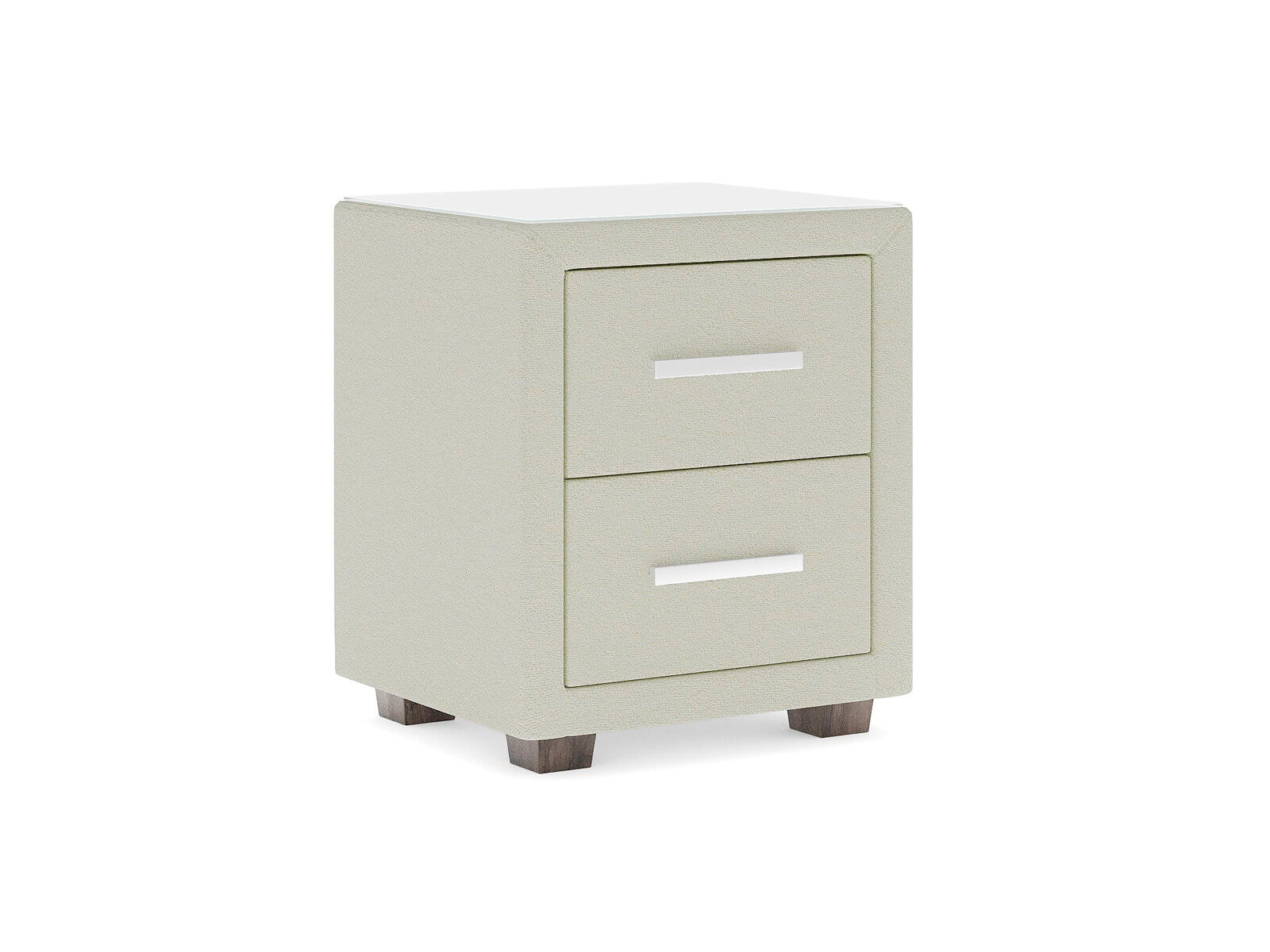 Прикроватная тумба с двумя выдвижными ящиками сочетается с любыми моделями кроватей, органично вписывается в интерьер практически любого стиля. Каркас тумбы выполнен из ДСП. Каркас тумбы и фасад ящиков покрыты обивочным материалом. Для удобства использования и продления срока эксплуатации, рекомендуется использовать стеклянную накладку. Накладка используется в качестве столешницы для тумбы и защищает ее от повреждений и загрязнений. Стеклянная столешница заказывается дополнительно.