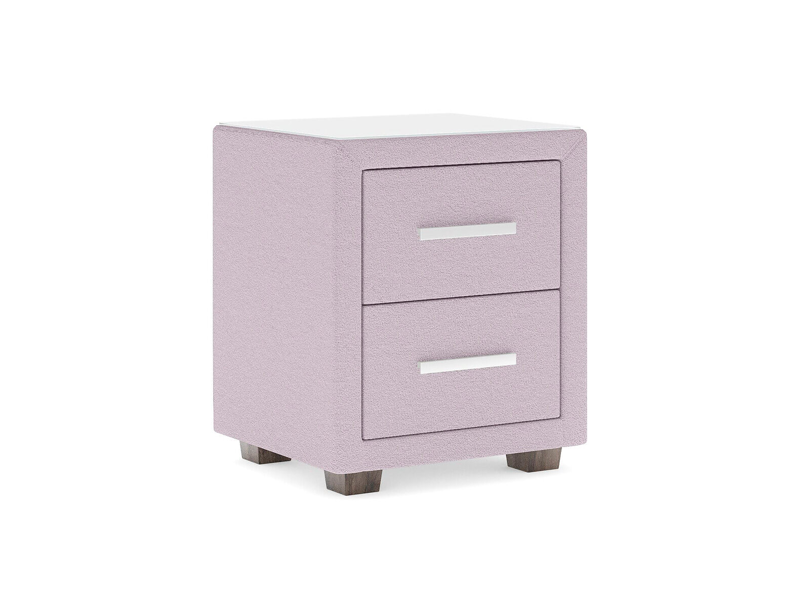 Прикроватная тумба с двумя выдвижными ящиками сочетается с любыми моделями кроватей, органично вписывается в интерьер практически любого стиля. Каркас тумбы выполнен из ДСП. Каркас тумбы и фасад ящиков покрыты обивочным материалом. Для удобства использования и продления срока эксплуатации, рекомендуется использовать стеклянную накладку. Накладка используется в качестве столешницы для тумбы и защищает ее от повреждений и загрязнений. Стеклянная столешница заказывается дополнительно.