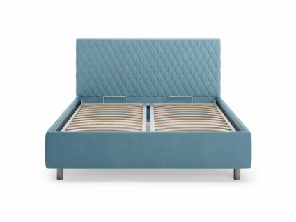 Прямую форму изголовья декорирует мягкий чехол. Чехол изголовья простеган ромбами среднего размера, что добавляет модели объем и подчеркивает выразительность. Кровать Stella лаконична, нейтральна, не берет на себя много внимания поэтому органично впишется в большинство современных интерьеров. Увеличенный просвет от пола позволяет облегчить уборку под кроватью, в том числе роботом–пылесосом. Царги кровати выполняются по технологии съемного чехла.