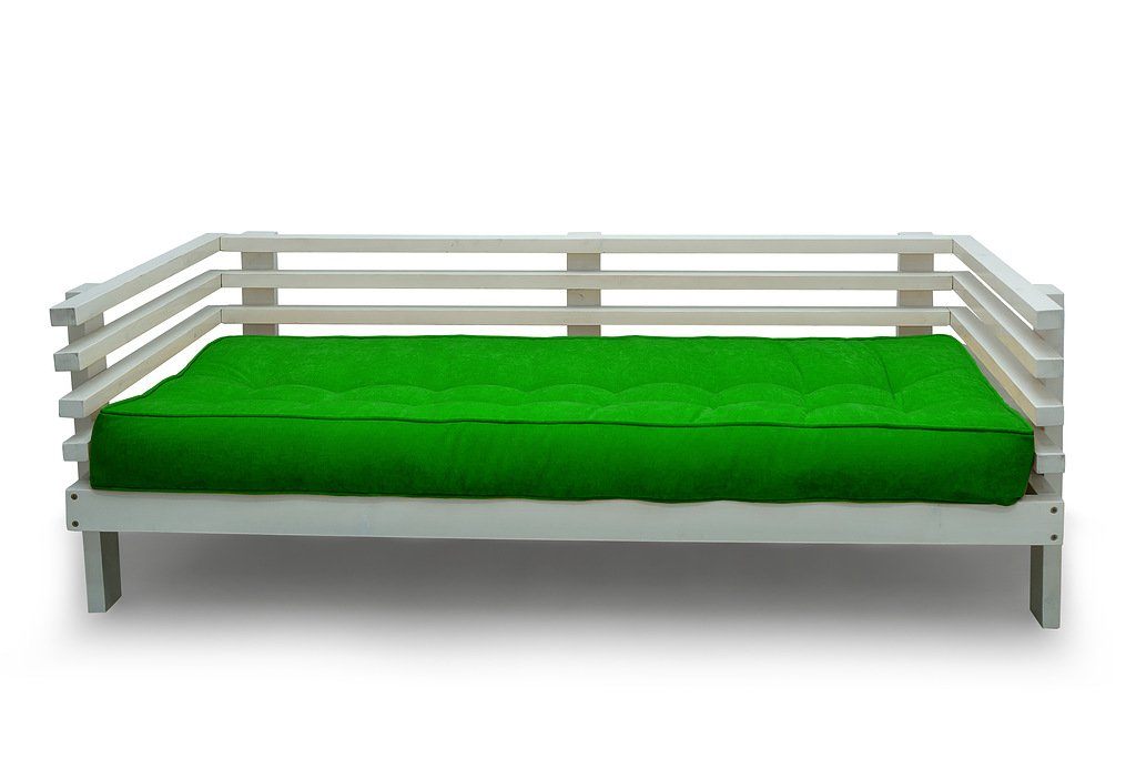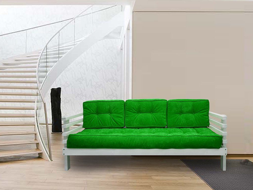 Мягкий матрас и три приспинные подушки позволяют комфортно расположиться на нём трём людям.