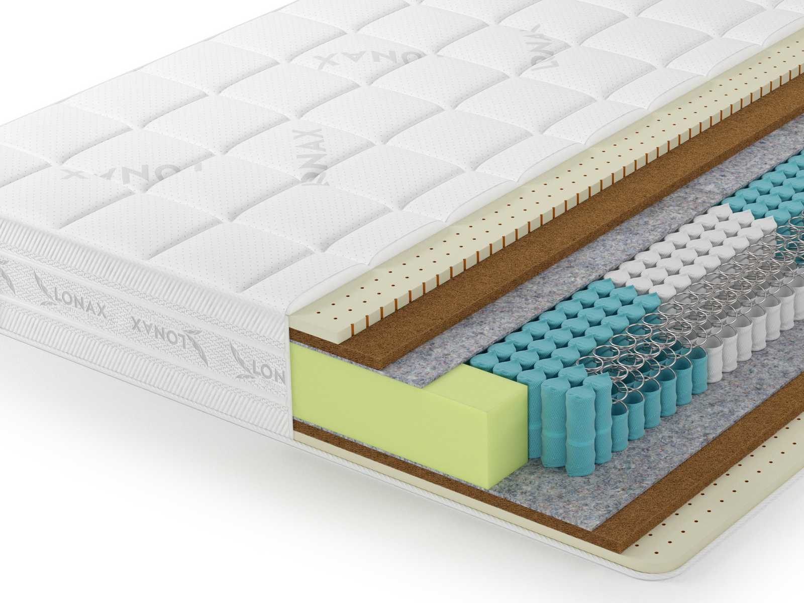 Двусторонний жесткий ортопедический матрас Lonax Strong Medium S1000 5 Zone реализован с помощью натуральных материалов и демонстрирует жёсткость выше среднего.