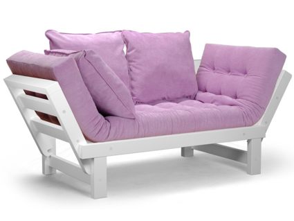 Каркас кушетки изготавливается из натуральных материалов (массив сосны). В комплекте с каркасом идут матрас, две приспинные подушки. Откидные подлокотники имеют два положения, что позволяет с удобством, разместится двум человекам.