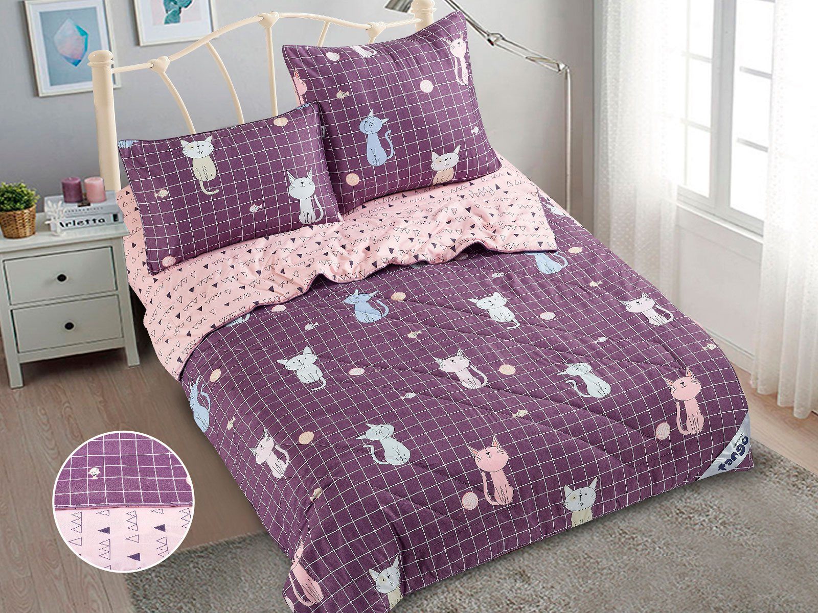 В данный комплект вместо пододеяльника входит облегченное одеяло. Комплект подойдет тем, кто устал от мучительного натягивания пододеяльников на одеяло.