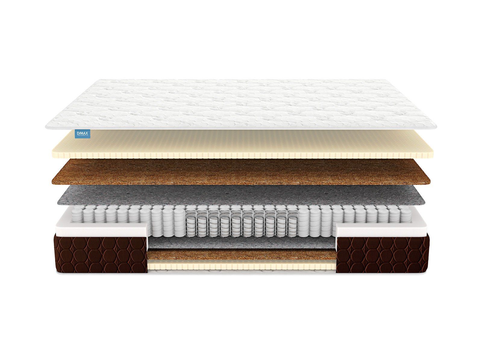 Димакс Твин Медиум – это ортопедический пружинный матрас с двойным блоком «пружина в пружине», в котором обе стороны имеют одинаковую среднюю жёсткость. Модель сочетает в себе премиальные натуральные материалы такие как латекс и кокосовую койру и легко выдерживает нагрузку до 170 кг на спальное место.