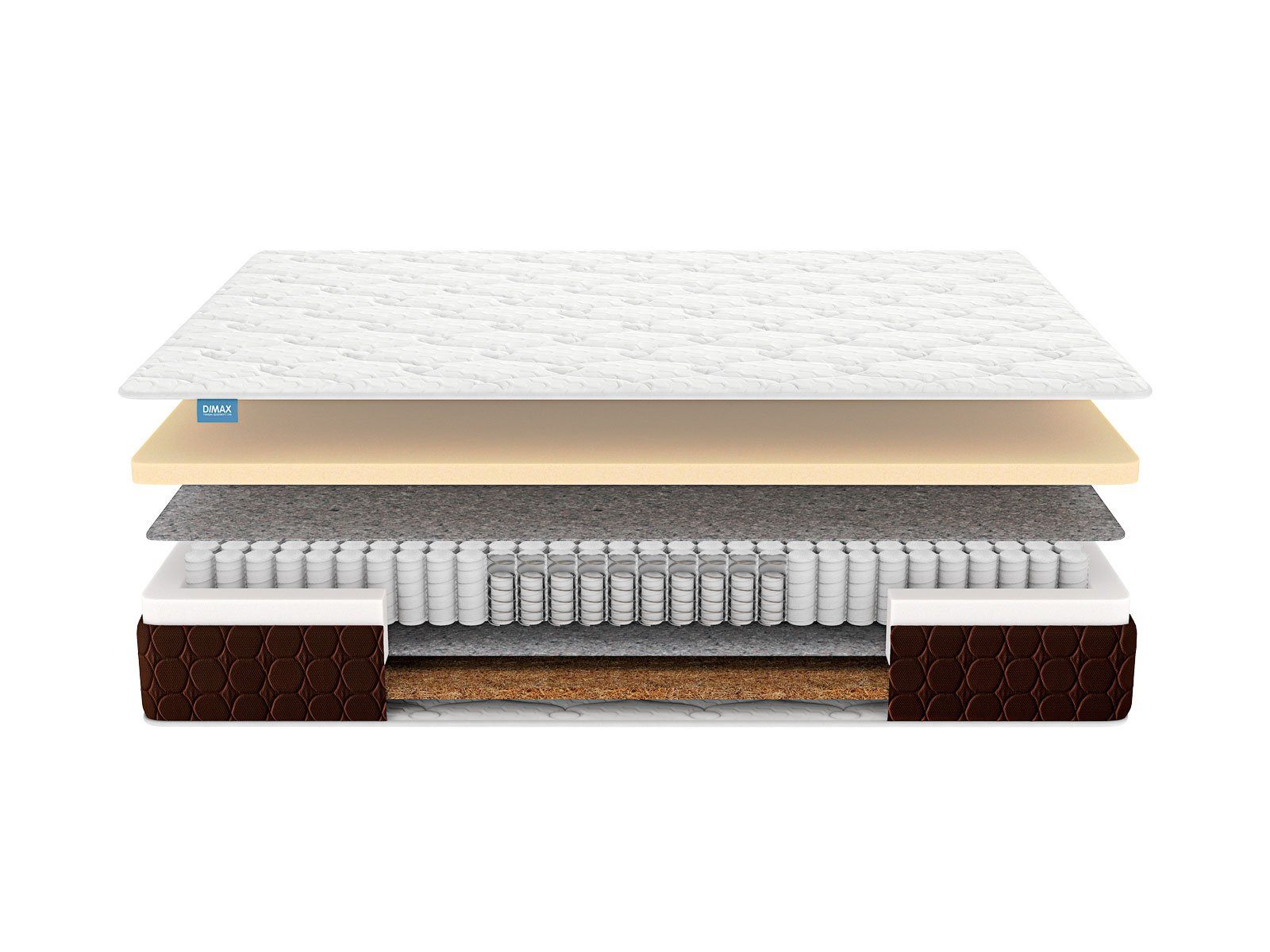 Димакс Твин Мемо Хард – это двусторонний ортопедический матрас, сочетающий в себе среднюю и высокую жёсткость. Благодаря усиленному блоку пружин «Твин» матрас выдерживает нагрузку до 170 кг на спальное место, оставаясь при этом комфортным даже при значительной разнице в весе у партнёров.
